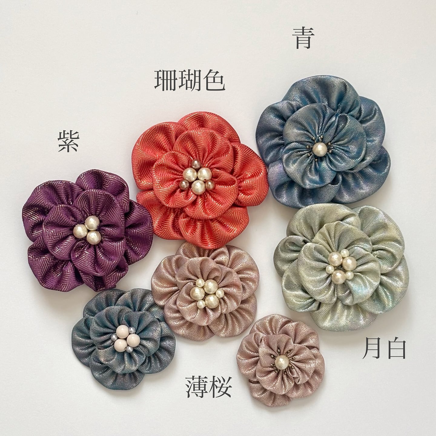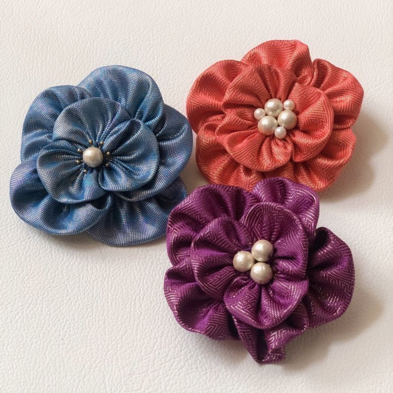 簡単なのに、生地の美しさでとても素敵なお花の髪飾りが完成します。