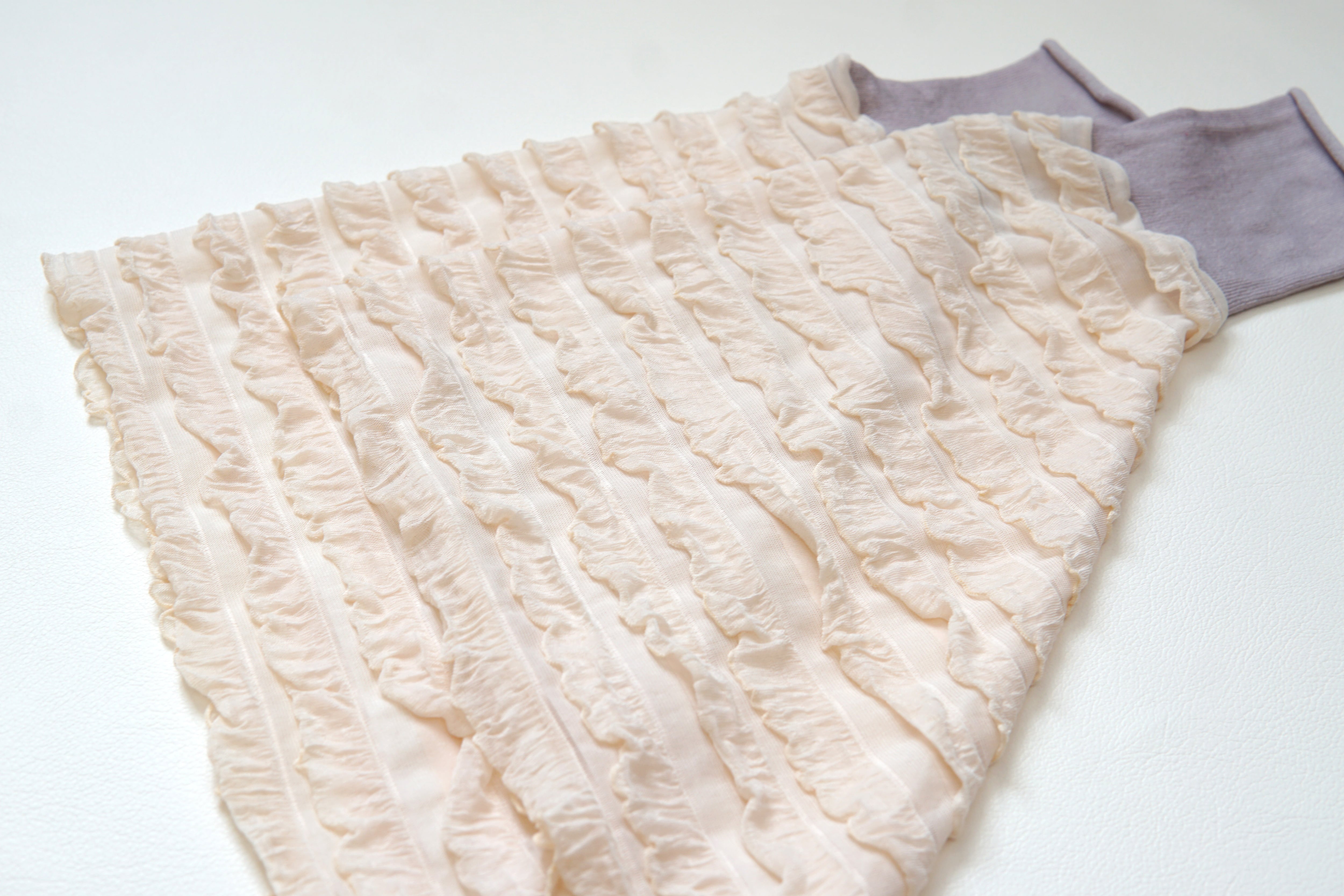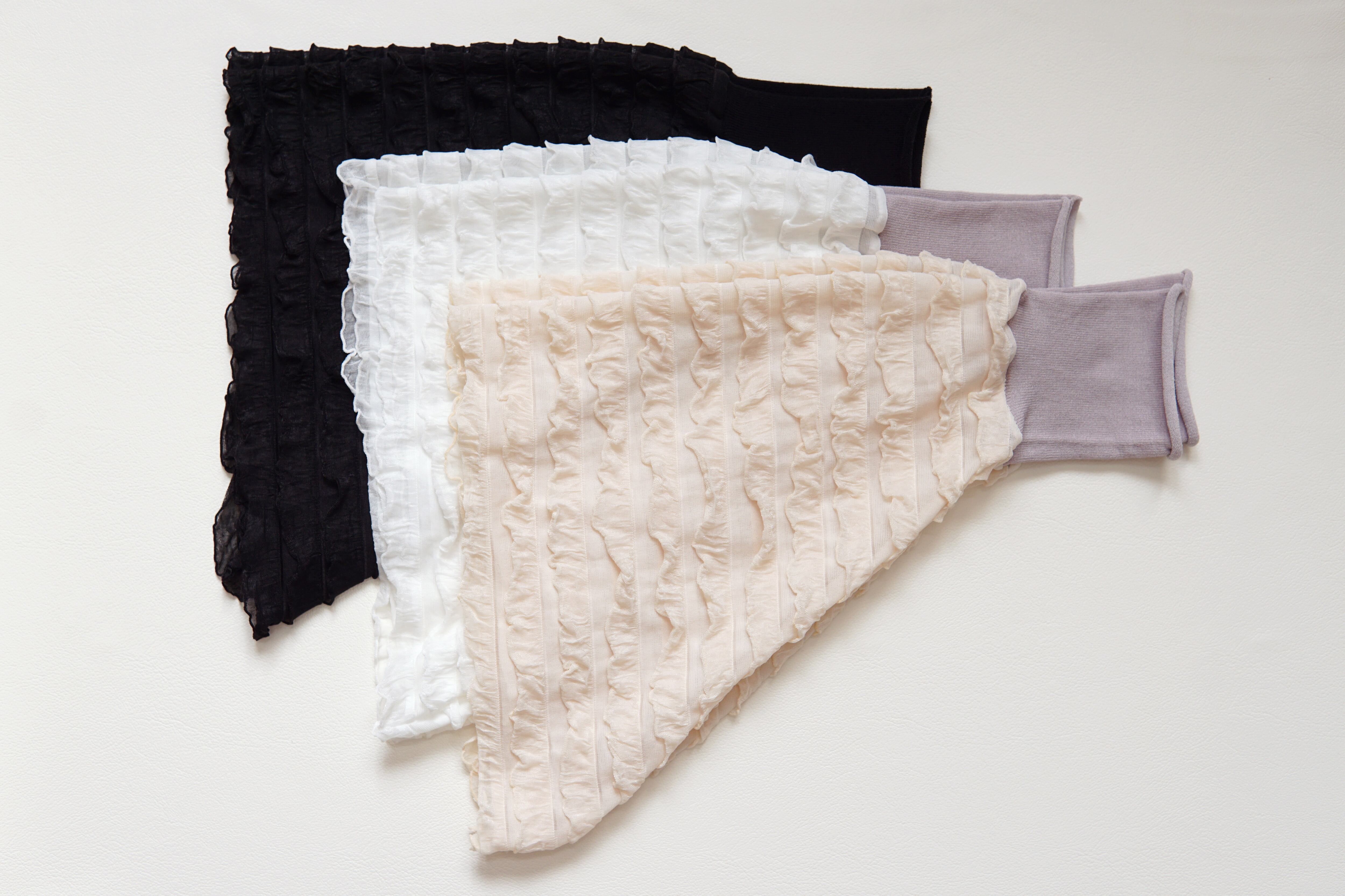 着脱が簡単で、自分好みにフリルの見せ幅を調整できるため、コーディネートの幅が広がります。