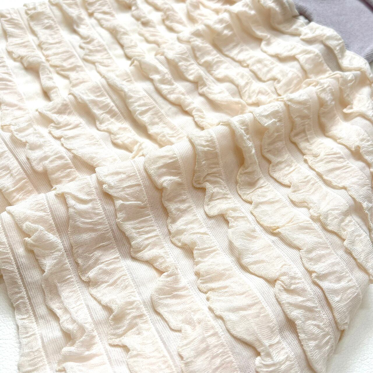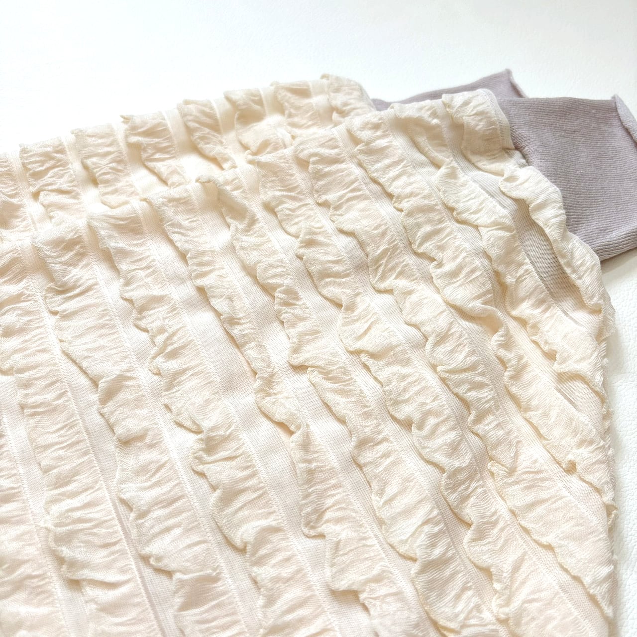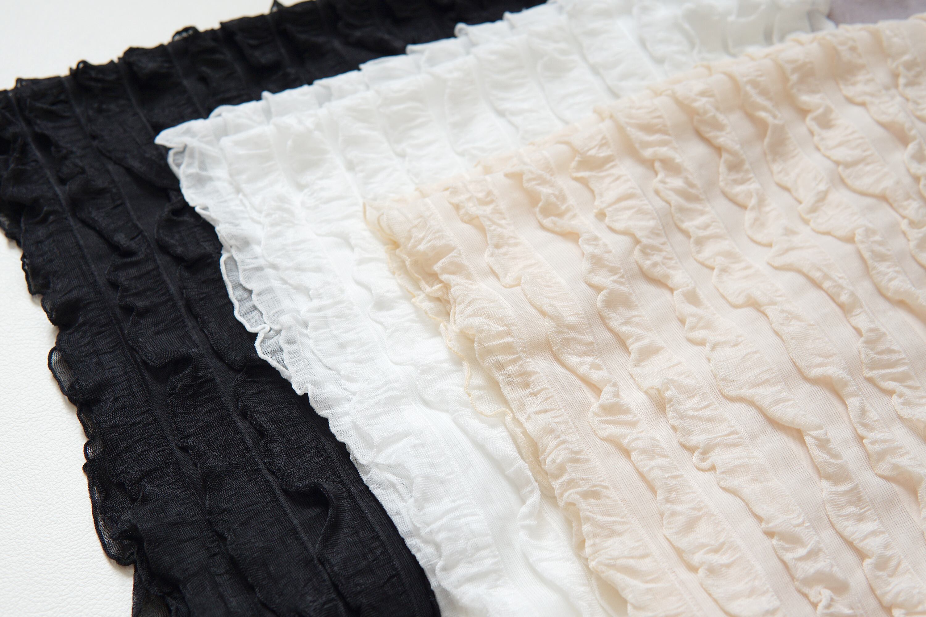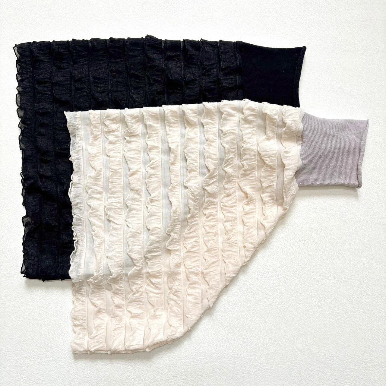 フリルが華やかさを引き立て、装いを一層魅力的に変えてくれるアイテムです。