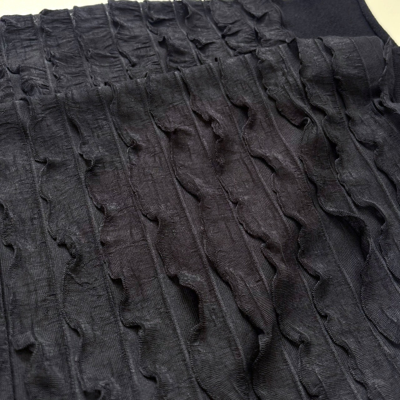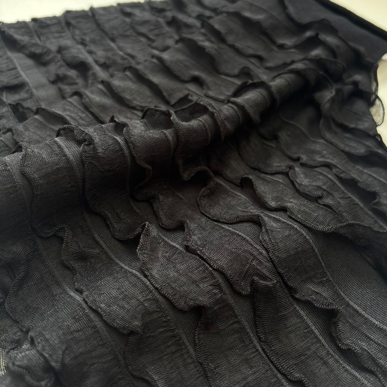 フリルが華やかさを引き立て、装いを一層魅力的に変えてくれるアイテムです。